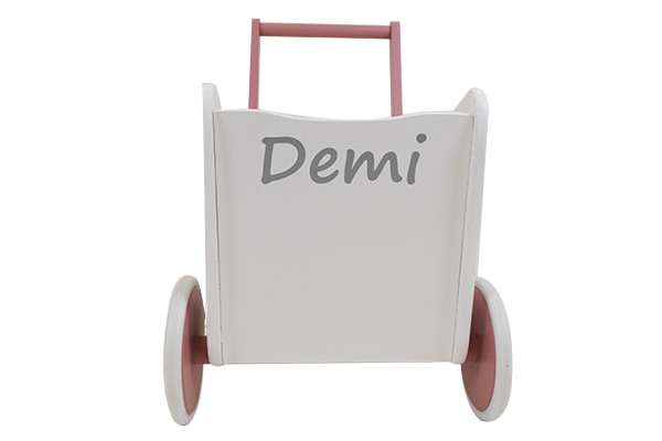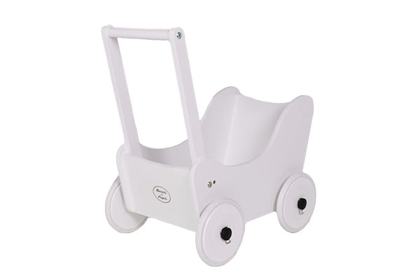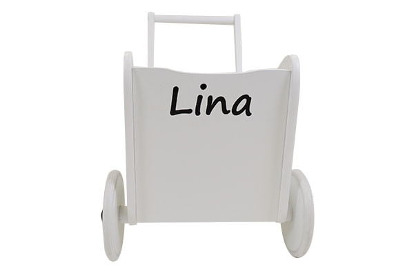 Houten poppenwagen voor poppenmoeders vanaf 1 jaar! De Little Angel olijfgroen is een prachtige poppenwagen. Voorzien van geluidsarme en krasvrije wielen met zwarte clips, waarmee zowel binnen als buiten mee gereden kan worden. De duwstang is verstelbaar in twee 2 standen (53 en 54 cm hoog) en de bak biedt ruimte voor een pop tot 42 cm. Een naamsticker is optioneel verkrijgbaar.
