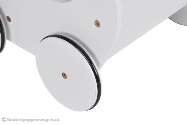 Leuke poppenwagen, jammer dat er geen afdekknopjes zitten voor de schroeven, die blijf je nu goed zien
