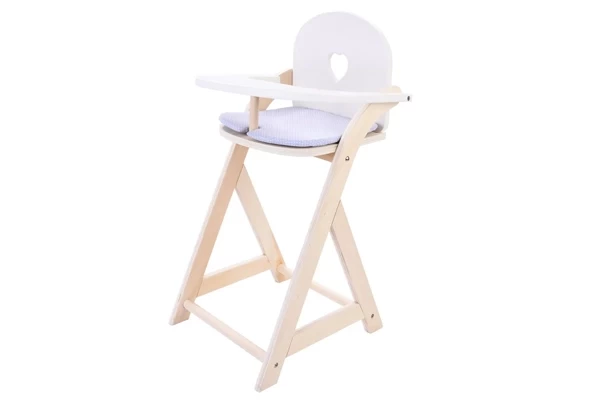 Is het al etenstijd? Schuif uw lievelingspop er gezellig bij! Met deze handige eetstoel kunt u de pop makkelijk te eten geven. De houten poppenstoel is stabiel en heeft een afmeting van 36x30x56,5 cm. De pop zal heerlijk comfortabel zitten dankzij het roze zitkussentje in de stoel. Wat staat er vandaag op het menu? De poppenstoel is geschikt voor kinderen vanaf 3 jaar.